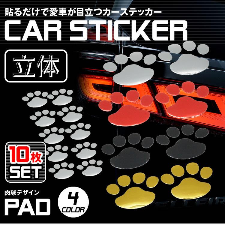 3d カーステッカー 肉球 かわいい 10枚 セット ドレスアップ エンブレム ステッカー 車 バイク 犬